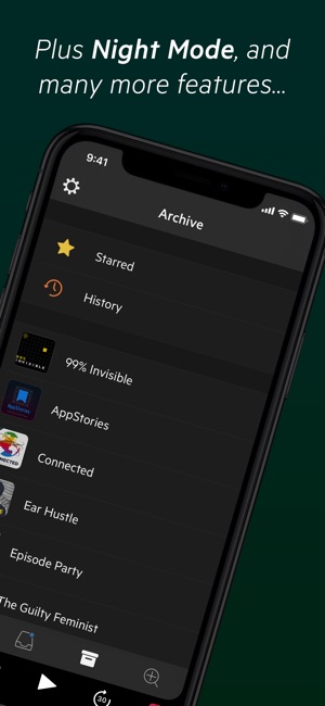 Castro is a beautiful, full-featured podcast player that makes it easy to track lots of podcasts. Here’s how it works: 1. New episodes land in your INBOX. Read their descriptions, add episodes you like to your QUEUE, and archive the rest. 2. Press play to listen to episodes from your QUEUE in ord…
