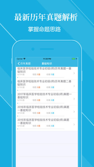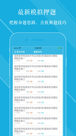 本软件适合于2019年全国卫生专业技术资格考试,临床医学检验技术 初级(师)考试专业,专业代码207,精心准备了考试题库,每一道试题都有答案解析,为考试的提供了充分的复习准备,可随时随地学习练习,有效帮助顺利通过考试,学习知识通过考试必备神器! 【功能介绍】 1、专项练习:强化练习习题,每一道题目都有详尽的解析,可选择不同题型,并可将易错或未牢固掌握的题加入复习库和错题库,以便反复练习。 2、模拟押题:2019年最新模拟押题试卷含解析,预测考点难点。 3、历年真题:精选最新历年真题。 4、章节练习:按照章节练习。 5、错题库:可自动加练习过程中错题加入收藏,以便反复练习。 6、收藏库…