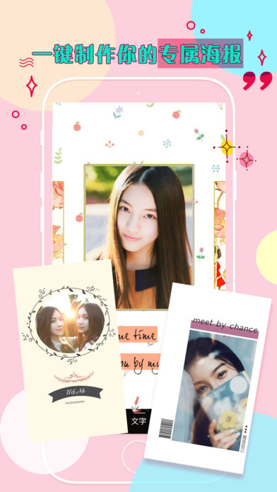 海报够潮,有货就show!秀出你的小清新艺术美,分享最美一刻,你值得拥有! 产品功能: ● 滤镜美化:教你P出女神范,时尚自拍就这么玩! ●海报:定制专属你的个人时尚艺术海报! ●拼图:模板拼图、自由拼图,打造属于你的个性照片墙。! ● 文字:让文字和唯美定格在一瞬间! ● 马赛克:让你的世界变得不一样的朦胧美! ● 贴纸:就要贴出不一样的你,不一样的色彩! 【分享】 支持分享到微信好友、微信朋友圈、新浪微博!