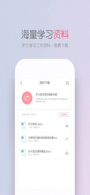 护士笔记Pro——让护士工作学习更简单的应用 护士笔记汇集在校考试、临床三基考试、护士资格证考试、初级护师考试、主管护师考试的重点,内设置在线操作视频学习、在线课堂、护理公文书写等栏目,是一本你值得收藏的护士笔记。当然,我们推出提高工作效率的排班表,护士工作求职招聘、学历提升的护士圈,让你在工作中找到知音,学习中找到同伴,护考中找到“战友”,使你在学习的路上不再孤独。欢迎加入我们这个大家庭! 特色: 新闻—每日护理新闻滚动更新 题库—专业题库助你考试 资料—50000护士资料随时查阅 视频—100多部视频教学提高实践能力 招聘—每日招聘信息助你找到好工作 排班表—统计、云端储存、小组排班等提高…
