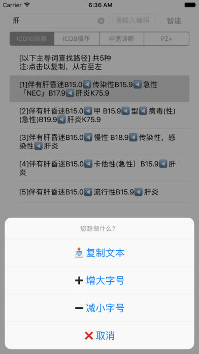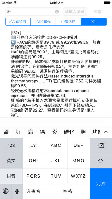 关键是:支持查询主导词 有任何问题、建议、Bug,请反馈http://weibo.com/ZoneCabala IFICDPro为查询ICD-10编码的查询工具。 独有的智能查询功能,点击智能按钮即可实现快速的智能查询。 主导词的反查功能,通过点击查询结果,即可获得主导词的查询路径,去除您在翻阅卷三的主导词迷茫。 国际疾病分类(International Classification of Diseases ,ICD),是WHO制定的国际统一的疾病分类方法,它根据疾病的病因、病理、临床表现和解剖位置等特性,将疾病分门别类,使其成为一个有序的组合,并用编码的方法来表示的系统。全世界通用的是第10次修订本《疾病和有关健康问题的国际统计分类》,仍保留了ICD的简称,并被统称为ICD-10。