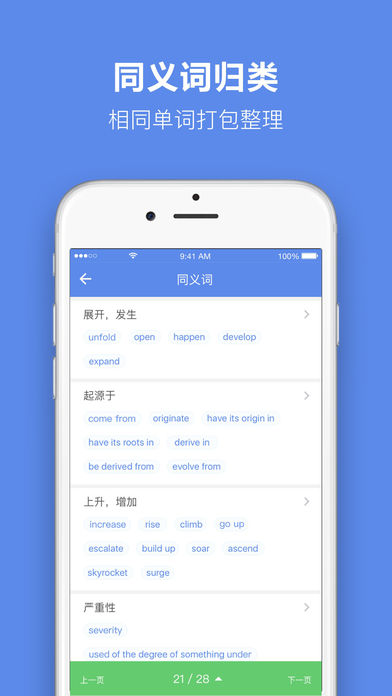 《雅思单词》是由小站教育出品的专门针对雅思的单词App,将雅思单词结构化分类,分别归类整理了雅思高频单词,雅思常考同义词,听力写作场景词汇。让单词记忆更个性化,备战雅思更高效! 如果你是雅思考生,词汇量不够、各种记不住,那么在背单词这道坎上从此不用迷茫在各类泛英语的单词App,各家厚厚的单词书,或是学习资料间了。小站依据多年雅思培训经验,针对雅思考试的题型特点,学科范围等特色设计的雅思单词App将成为你备战雅思的好帮手~ 【雅思考试专用APP】 从词库的选取(剑雅和真题中的高频词汇)到功能的设置(剑雅核心单词,同义词归类,听力写作学科分类)根据雅思考试特点量身定制。 【雅思同义词整理 】 整理了雅思考试阅读中常见的同义词替换以及写作中常用的单词不同表达。 【吃透雅思核心词汇】 将剑雅的核心词汇高亮,结合文章更易学习。学完单词再刷题目,感觉自己棒棒哒! 【听力写作场景分类】 雅思听力高频单词按场景分类,写作常用单词按话题分类。单词想怎么记就怎么记~ 【科学的记忆复习方法,让你真正记住单词】 只有学习没有复习的背单词都是耍流氓!我们结合艾宾浩斯记忆曲线和Supermemo的记忆法,让每个学到的单词变成真正掌握的单词(With spaced repetition, you can forget about forgetting-Supermemo)。 除此之外,在小站雅思收藏的生词也能加入学习计划中!如果你是正在备考雅思,或者准备考雅思,加入我们吧~QQ反馈交流群:461401856