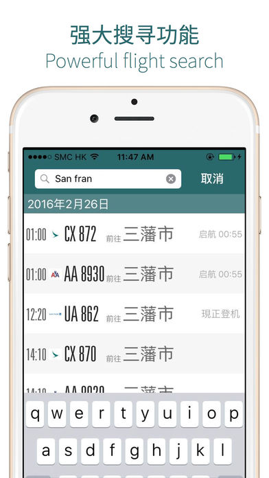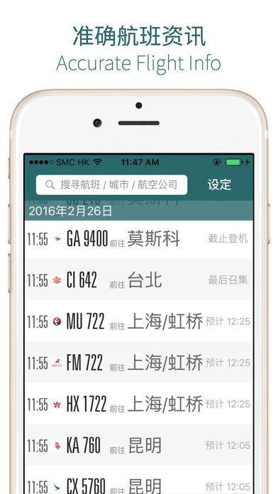 《香港国际机场航班资讯》APP 提供香港机场的即时航班资讯,适合香港居民和旅客使用。各位出行时需要顾及的事务繁多,此时如果出现一个「即时」、「准确」及「方便」的航班资讯APP,肯定会令各位的旅程更自由。我们正正就是以方便易用为设计原则,欢迎下载支持。 使用场景包括: • 无论是独游、或者与朋友一起出行,所有必要的航班资讯立刻知道! • 接机、送机,一个APP帮你打点一切~ • 闲赋在家,看看航班情况也可以啊 此APP功能包括: • 即时离港、抵港客机列表 • 离港客机登机指示:航厦、航空公司行段、闸口、航班现况及航空公司查询电话 • 抵港客机现况、及出境大堂指示 • 航班状况每分钟自动更新(可关闭) • 航班资讯包括昨天、今天、明天、及后天 • 语言设定包括繁体中文、简体中文及英文 ** 本APP需要互联网连接才可运作顺畅,祝各位旅途愉快!