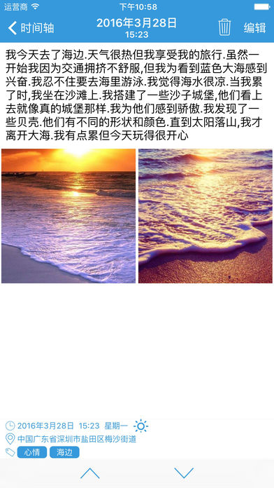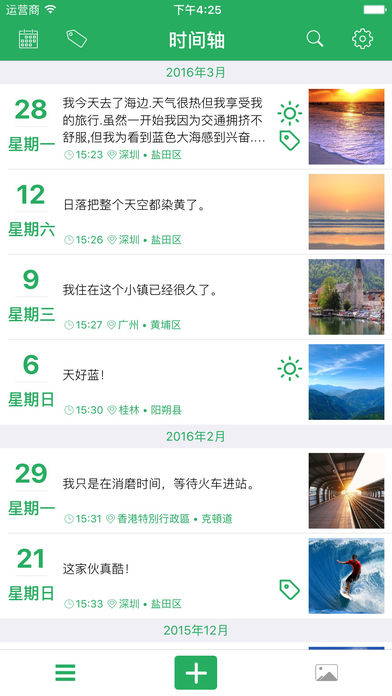 简约不简单 --零点日记 ●●●●●●功能特性●●●●●● ● 时间轴 - 以时间轴的方式展示您的日记 ● 照片墙 - 您的照片将以照片墙的方式展示 ● 隐私密码 - 指纹和密码保护您的日记 ● 字体大小 - 调节字体大小 ● 主题更换 - 4种主题色彩可供选择 ● 提醒 - 可设置每日定时提醒您写日记 ● 搜索 - 全文搜索 ●●●●●●VIP特性●●●●●● ● 照片备份 - 备份你的照片以防止丢失 ● 字体更换 - 更换字体 ● 主题更换 - 超过20种主题 ● 导出 - 可导出日记到电子邮箱 ● 多个提醒 - 可设置多个提醒
