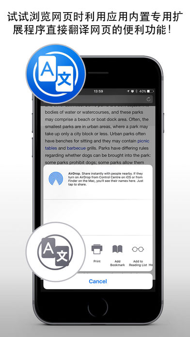 这是一款让您忘记语言障碍的应用! 将任何文字翻译成超过30种语言! 试试浏览网页时利用应用内置专用扩展程序直接翻译网页的便利功能! 试试此应用,它将成为您的必备应用! 适于专业用途和私人使用。