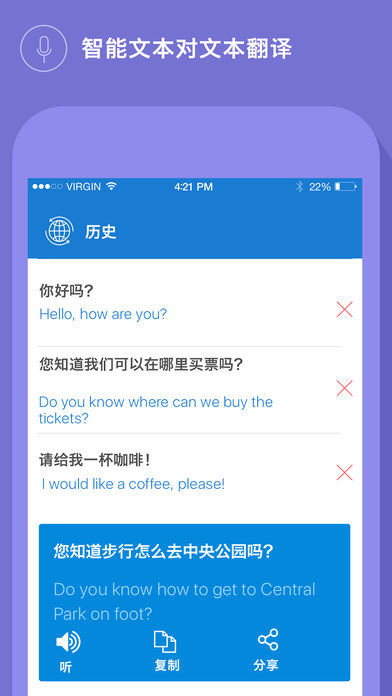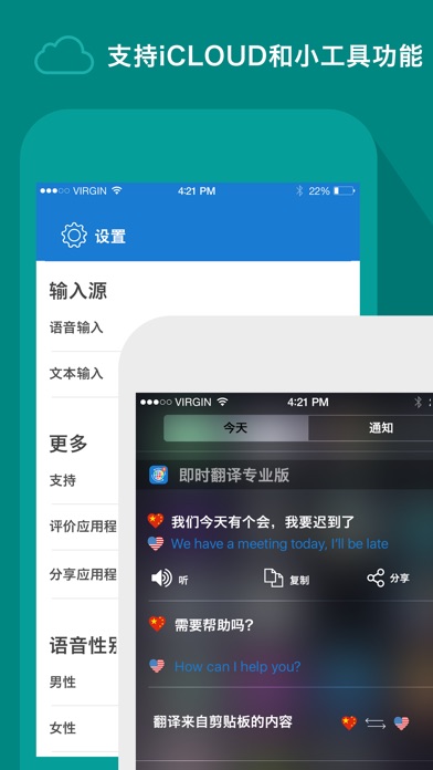 即时翻译专业版是一款最智能的翻译工具,应用于您的iPhone 和 iPad。即刻将语音或文本翻译成各种语言,促成一次完美的谈话。现在,您可以与任何您要会面的人展开交谈了。 即时翻译专业版是您可以随身携带的私人翻译助手。它还能翻译简单的短语和句子。还能聆听您的语音,并将其翻译成您想要的语言。 关键特性: - 支持103种语言的文本对文本翻译; - 支持42种语言的语音对语音翻译; - 最先进的语音识别技术; 主要特征: - 即时翻译文本或语音; - 可选择男性声音或女性声音; - 内嵌脏话过滤器,拦截任何脏话; - 自动识别输入文本的语言类别; - 保留所有的翻译记录,以便之后查阅; - 内嵌即时翻译小工具。离线时可将其作为短语词典使用; - 集成至iCloud: 在您的所有iSO设备上同步您的翻译; - 您最喜欢的短语变得触手可及,随时为现场对话做好准备; - 激活横屏模式,获得更佳的翻译体验; - 已集成复制-粘贴功能,用于快速输入; - 直观的用户交互界面,设计精美; - 分享翻译好的文本; 该款应用程序由我们的专业团队开发。为确保产品满意度,即时翻译已在各款设备上测试。若有任何问题或建议,请通过以下方式与我们联系 语音翻译支持的语言:阿拉伯语(埃及),阿拉伯语(沙特阿拉伯),阿拉伯语(国际),印尼语(印度尼西亚),广东话(简体),加泰罗尼亚语,捷克语,丹麦语,荷兰语,英语(澳大利亚),英语(英国),英语(美国),英语(印度),芬兰语,法语(加拿大),法语(法国),德语,希腊语,希伯来语,北印度语,匈牙利语,意大利语,日语,韩语,简体中文,繁体中文,挪威语,波兰语,葡萄牙语(巴西),葡萄牙语(葡萄牙),罗马尼亚语,俄语,斯洛伐克语,西班牙语(西班牙),西班牙语(拉丁美洲),瑞典语,泰语,土耳其语。 文本翻译支持的语言:南非语, 阿尔巴尼亚语, 阿姆哈拉语, 阿拉伯语, 亚美尼亚语, 阿塞拜疆语、巴斯克语,白俄罗斯语,孟加拉语,波斯尼亚语,保加利亚语,加泰罗尼亚语, 宿雾语, 齐切瓦语,中文,科西嘉语,克罗地亚语,捷克语,丹麦语,荷兰语,英语,世界语,爱沙尼亚语,菲律宾语,芬兰语,法语,弗里斯兰语,加利西亚语,格鲁吉亚语,德语,希腊语,古吉拉特语,海地克里奥尔语、豪萨语、夏威夷语,希伯来语,印地语, 苗语,匈牙利语,冰岛语,伊博语,印尼语,爱尔兰语,意大利语,日语,爪哇语,卡纳达语,哈萨克语,高棉语,韩语,库尔德语(库尔德),吉尔吉斯语,老挝语,拉丁语,拉脱维亚语,立陶宛语,卢森堡语,马其顿语,马达加斯加语,马来语,马拉雅拉姆语,马耳他语,毛利语,马拉地语,蒙古语,缅甸语(缅甸),尼泊尔语,挪威语,普什图语,波斯语,波兰语,葡萄牙语,旁遮普语,罗马尼亚语、俄语、萨摩亚语,苏格兰盖尔语,塞尔维亚语,塞索托语,修纳语,信德语,僧伽罗语,斯洛伐克,斯洛文尼亚语,索马里语,西班牙语、巽他语、斯瓦希里语,瑞典语,塔吉克语,泰米尔语,泰卢固语,泰语,土耳其语,乌克兰语,乌尔都语,乌兹别克语,越南语,威尔士语,科萨语,意第绪语, 祖鲁语