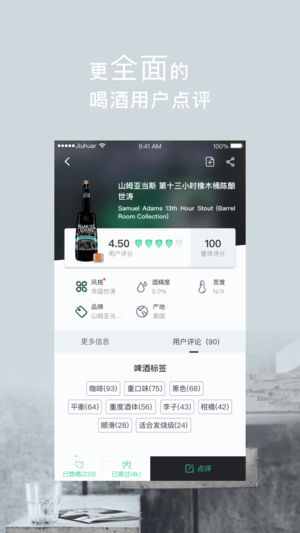 酒花儿以社交网络的形式提供有关啤酒、精酿啤酒的所有信息。它不仅提供了数以万款啤酒的资料,众多网友用户的真实点评,更让你方便的找到身边好喝的啤酒,发现精酿啤酒的酒吧、餐吧、啤酒超市等啤酒发烧友聚集地,更能让你足不出户,即可轻松海淘到世界各地的热门精酿啤酒。 扫码识别新的酒款,制定个性化酒单,并且学习到最全最新的啤酒知识。打开精酿啤酒的大门,发现不一样的人生!精酿,是一种生活态度。所有的努力,只为让你喝到一口好精酿。 [特色功能] 1.啤酒、精酿啤酒点评:没喝过的啤酒、精酿啤酒到底怎么样?适不适合自己的口味?众多网友提供真实的点评,帮你选择合适的啤酒以及精酿啤酒;喝过的啤酒和精酿啤酒,色泽、…