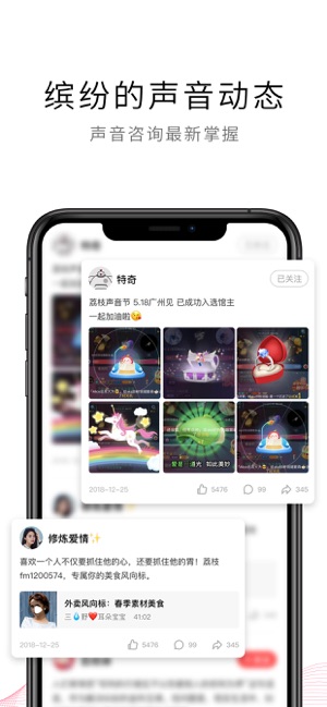 荔枝5.0全新体验等你发现~~ 炫酷私人FM,满足你不同场景随心听的小任性, 个性化智能推荐,即懂你又会给你小惊喜。 和荔枝一起沉浸在声音世界里 把世界说给你听 【温暖治愈】-情感频道 背着吉他的蝙蝠女侠、程一、蕊希、日食记姜叔、卢思浩、张皓宸、饶雪漫、新世相......关于人生的迷茫和烦恼,一生中那些平凡又缠人的起伏心绪,你都可以从这些声音里找到答案与慰藉~ 【用声音打破次元壁】-二次元频道 你可来啦!你喜欢的大大们都在这里!慕寒/Lao干妈/西瓜JUN/双笙/小魂/银临/慕斯小乖/山新/边江/A路人/伊丽莎白鼠…还有很多好玩的二次元声音等着你,还不赶紧上车! 【听得停不下来】-广播剧频…