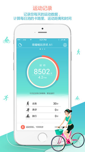 荣耀畅玩手环运动健康,您的私人健康助理,每天自动跟踪和记录您的运动和睡眠情况。 1)记录每天的运动步数,准确计算每日消耗的卡路里、运动距离和时间。 2)记录每天的睡眠情况,告知您每天的深睡时间、清新次数和浅睡时间。 3)全面统计您的每天、每月数据,历史数据一目了然。 4)给自己一个目标,鼓励自己完成每日的运动目标和睡眠目标。 5)日积月累的成就,记录您从开始使用以来的总运动量,达标总次数。 6)自动运动同步,华为云平台为您提供永久的数据存储,只要轻轻下拉就可以完成同步。 7)精确检测空气中的紫外线强度,帮你更好的防晒和爱护皮肤; 8)为您提供贴心的来电提醒和短信提醒,让你不错过每一次重要的约…