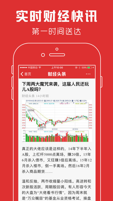 财经头条是一款专为关注财经和金融理财的人士设计的手机软件。 我们致力于打造专业、权威、为用户着想的财经浏览器。 凭借技术优势,每日精选了各大财经网站的头条新闻内容。 内容涉及财经、股票、基金、期货、债券、外汇、银行、保险等诸多金融资讯与财经信息,全面覆盖财经领域,每日更新上万条最新数据及资讯。 最快的行情! 最全面的资讯! 最齐全的功能! 最专业的数据!