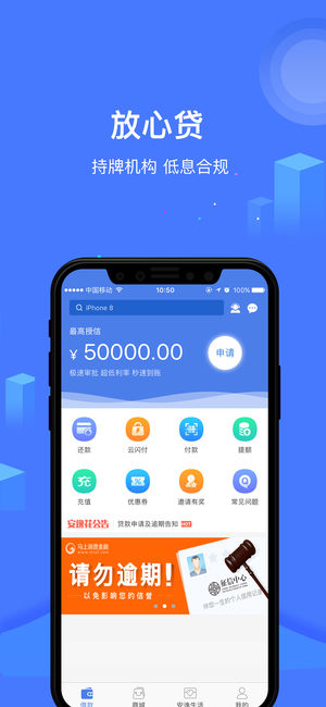 【平台介绍】 马上消费金融公司推出的一款循环额度的信贷产品。根据用户的信用情况,提供1000-50000额度的贷款额度。用户可以在额度范围内进行取现、分期、消费。 【产品优势】 1、申请方便:无抵押,免面签,流程简单。 2、极速审批:最快三分钟可完成审批和放款 3、额度高:最高授信5万 4、消费场景全覆盖:除了可以支持提现,支持用户用闪付进行线上及线下的额度消费。 5、利率低:日利率低至0.04% 【资金来源】 资金来源于马上消费金融股份有限公司(银监会批准成立的持牌消费金融机构) 【联系我们】 官网:http://www.anyihua.com 客服电话:400-036-8876 客服…