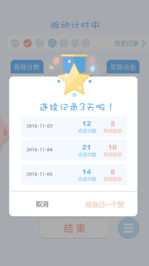 ——【产品简介】—— 胎动点点,一款极简的胎动计数器和宫缩计时器,怀孕期准妈妈必备的胎动和宫缩记录工具。为您提供贴心的数胎动提醒功能,胎动记录的历史数据保留和统计,掌握胎儿胎动规律,确保宝宝健康成长;简单明确的宫缩记录功能,确保临产分娩安全无忧。 ——【产品特点】—— 『数据可视』: 胎动分布可视化,宝宝的小动作一目了然; 『周记录表』: 每日记录签到功能,养成健康好习惯; 『计时提醒』: 倒计时提醒,30分钟以上记录可自动保存; 『温暖配色』: 2016年流行色,baby blue与baby pink的碰撞; ——【胎动感觉】—— 那种感觉是抽动、扭动、翻滚,是拳打脚踢、肚子一跳一跳、…