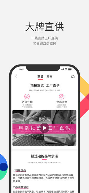 精选速购-精挑细选,工厂直供。 自2014年正式上线,精选速购对平台的每一款商品便有着严格的要求,商品审核精挑细选、层层把关,旨在为客户提供更高品质、更便捷的购物体验,获取更高性价比的全球优质精选商品,深受客户的信赖,迄今已成为行业的领航者。 【新人专享】 大牌商品,1元起抢购 注册即可终身免费领面膜 【精挑细选】 全球500000款大牌产品 遍布全球的精选买手团成员为您千里挑一,筛选通过率低至0.18%,严格的资质审核,确保产品100%的正品品质保障。 【大牌直供】 一线品牌工厂直供 直接由海内外实力认证的供货商和品牌商直供,去除溢价和中间流通成本,让产品直达客户。创客会员能省50%,…