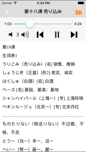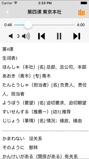 本应用为《新版中日交流标准日本语》单词学习软件。它包括中级上下册共32课全部单词内容,全程真人高音质发音。 使用本应用,配合教材,各个阶段的学习者方便快捷的学习和查阅教材的单词内容,快速高效地记忆单词。 ■完全配合教材单词内容 ■所有词条以课为单位按序编写 ■每个单词都配有真人高质量发音 ■全文朗读功能,锁屏后依然可以练习背诵单词 ■应用可快速返回到最后学习处,不用担心上次学习到哪里 《新版中日交流标准日本语》中级上下册单词,词汇量总数约为2550词,上册约1200词,下册约1350词。音频概括所有课文生词表中出现的单词发音。 为了帮助广大日语学习者能够快速、准确地掌握《新版中日…