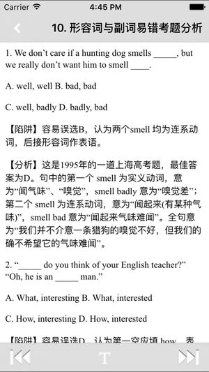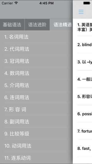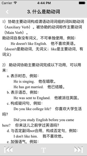 英语语法全解手册作为传统实用的基本英语语法教程,它能在众多同类软件中脱颖而出,关键在于它有极强的针对性。 术语通俗易懂,内容简明扼要,每一章后的练习有利于及时巩固和提高,这些特色使本应用倍受广大英语学习者的青睐。 英语语法全解手册根据英语语法最具权威性的著作编制而成,以内容丰富实用而广受读者欢迎。 此版本保持了基本框架和朴实的文风,过时词语被一扫而光,增补了不少摘自英美原版书籍或资料的例句,语汇鲜活,富于时代气息,提出将语法和词汇揉为一体、语法学习以动词为纲的新理念:博采众长,进一步完善了语法体系。 系统归纳整理了英语的语法规则,并分为“基础语法”、“语法进阶”、“语法精通”三个系列,共讲…