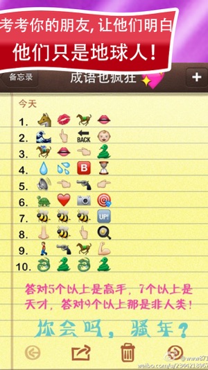 史上最难的表情图猜成语游戏!测测你到底是地球人还是外星人,或者你是非人类!如果你的智商和抗战片里的“鬼子”不相上下的话,请慎入! 脑力激荡~ 根据4张表情图片,找出正确的成语答案,填入成语拼音的首字母。考验你的思维能力,挑战你的好友! 希望大家踊跃评论,您的每一份评论,都将化为我们创作更多题目的动力。分享给好友和求助可以赚金币哦!