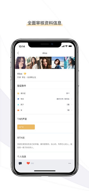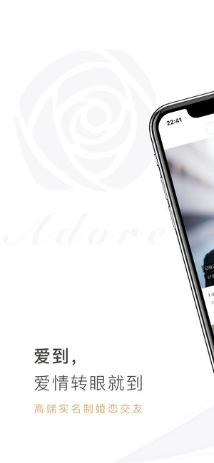 Adore(中文名:爱到)是为认真寻找结婚伴侣的优质单身提供高品质的婚恋相亲服务;平台使用实名制注册登记会员,对每一位会员的身份证信息、学历信息、资产信息等进行严格审核,以保证会员资料的真实性和准确性;杜绝不良交友行为,严格审核过滤各种诈骗份子,Adore将提供纯洁友好的相亲环境。 寻觅:宁缺毋滥,在海量会员中为你精挑细选,匹配适合你的另一半。查看对方详细资料,近距离了解彼此。 发现:文艺范、高颜值、名校等,喜欢哪一款,为你精心挑选。 社区:分享生活点滴,写给未来的他。 消息:遇见喜欢的人,用你的方式大胆告诉对方。 我:尽管大胆写上你想说的话、择偶要求、拍上短片展示最真实的自己。婚姻是一辈子…