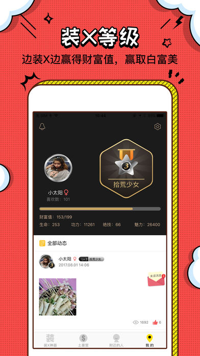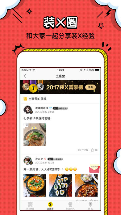 产品介绍: 一款让你欲罢不能,装13装到上火星的手机APP。它能让你这一秒变土豪白富美、下一秒坐拥豪宅私人飞机。拉轰又炫酷的APP,大写的好玩! 【炫富】提前享受土豪的快感,财富值甩人200条街,战斗机中的土豪神器。支持所有场景的炫富,视频直播,个人专机、晒豪车、晒别墅、晒装备、晒订单、晒美女…等,各种你做梦也想不到的炫富装13。 【恶搞】海量恶搞场景,验孕单、亲自鉴定、丑女新闻、明星聊天、凤姐告白等,绝对让你欲罢不能! 【表白】让你免费包场、LED大屏广告、高速路广告牌、地铁广告、街道横幅等等广告位,如此用心表白,想要拒绝也太难。 【表情包】上传你的美照就能个性定制,专属你的表情包就是这么牛! 炫富必备神器!!绝对值得拥有!!当然这款APP也让你如何辨别,谁才是真正的土豪,也许你身边的那个不一定是真的哦~大家千万不要轻易上当!想知道怎么玩这个神器的软件么,那就赶紧下载看看吧~