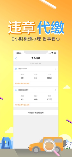 官方出品车辆违章查询代办、在线年检、驾照查分、油卡充值等车务服务专业级APP,⑦年专注车务服务,日均超千万车主用户使用免费违章查询和提醒服务。 -----核心功能----- 【违章查询】交管直连数据接口扩至22个省,覆盖城市410+,官方权威稳定永久免费 【违章代办】专业七年客服团队,再不用请假去交管银行排大长队 【违章提醒】新违章免费全国范围主动通知提醒 【违章热点】百亿级违章大数据展示违章热点地图,违章预警,车主互相提醒或吐槽 【油卡充值】油卡在线充值88折,即时到账,众多优惠享不停 【车辆年检】联合邮政绿色上门服务,车辆年检在线一键搞定,有效年检期到期提醒 【车主社区】社区论坛,车主互…