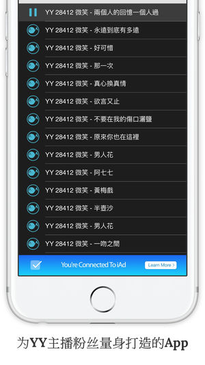 想听热门排行的YY女主播—微笑,直播演唱吗? SwiDJ 专利使用介面,搭配强大的智能演算,让你一个滑动、一点点击就有30~90分钟的视频串流 更多 YY主播动态专辑: http://www.swibeat.com/album/SwiAPPs.php?lang=TW&swicls=swib2 老是面对微博、优酷、YouTube一长串行表影片,一直挑选视频合辑? 喜欢串流视频的朋友们,试试吧! 声音编辑 蔡旻岳 容我向您推荐,咱们这款介面真的很~~~不一样! 您指尖向右,是直接串流快节奏的主播视频歌曲,往左是串流抒情风格的歌曲; 向上拖曳是听较新发行的歌曲,下拉是经典的老歌重唱 看您不管…