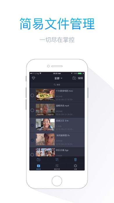 在形形色色的手机市场上,苹果手机是追求高品质生活人士的首选。但是众所周知,“苹果”的脾气可不小,其自带的视频播放器只支持很少一部分的播放格式,大部分果粉们仍然需要借助各种转换器来播放想看的视频,非常麻烦。但现在,这种烦恼已经被Free Video Player播放器所攻克,它能使所有格式的流媒体、电影和视频文件在iphone,ipad 和 ipod touch中完美播放,无需转换,苹果用户下载Video Player Plus即可畅通无阻乐享视听盛宴。 兼容的胸怀是Video Player Plus的独特优势,3gp, asf, avi, divx, dv, dat, flv, gxf, m2p, m2ts, m2v, m4v, mkv, moov, mov, mp4, mpeg, mpeg1, mpeg2, mpeg4, mpg, mpv, mt2s, mts, mxf, ogm, ogv, ps, qt, rm, rmvb, ts, vob, webm, wm, wmv,Dolby Digital (AC3), Dolby Digital Plus (EAC3)……各种格式均可播放。 Video Player Plus是真正强大的媒体播放器,它不仅擅长播放任意格式的视频,还拥有媒体播放器的所有功能。支持高清视频(720P, 1080P)播放,旋转锁和屏幕比例控制,新建、重命名、剪切、粘贴和删除等操作的文件及文件夹管理,精选的内置追踪和翻译器功能,电视输出功能,支持关闭循环、单项循环和全部循环的播放模式,除此之外,你还可以与电脑同步数据,随时随地在苹果设备上观看心爱的视频文件。 Video Player Plus还人性化的为你设计了贴心的辅助功能,独有的恢复设置让你不必担心突然关闭的应用,轻轻滑动手机即可轻松控制回放和快进速度以及音量的调整。 Video Player Plus还是智能播放器,你能用它来播放视频,调整对比度,饱和度,色调,亮度和伽玛,让你体验更优质的播放画面。 还等什么,Video Player Plus有足够的信心不会让你失望。立即下载,体验更多Video Player Plus带给你的无穷乐趣。