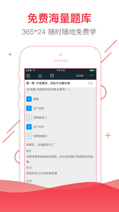 中级经济师考试刷题利器!免费题库 人工智能个性化,考试必备! 中级经济师考试题库涵盖《经济基础理论及相关知识》、《专业知识与实务》(15个专业)的所有知识点,还有智能刷题、模拟测试、错题回顾、猜你会错等功能模块,2017年中级经济师考试轻松过! 五大功能,形成最科学的方式,中级经济师考试帮考题库让你教、学、练、问、考一套搞定! 智能刷题 基于人工智能的自适应学习引擎为每个学员私人定制学习题库,实时智能调整,始终为每个学员优化高效的学习路径。 错题回顾 错题自动收录智能整合,为你的巩固梳理做好充足准备 模拟测试 仿照考试出题规则模拟考试,用于考前摸底测试。 猜你会错 大数据预测你有容易答错的试题,用于重点复习最有可能的失分考点。 学情分析 智能分析统计每个学员的能力值、掌握情况、答题量、正确率等,给你看得见的学习效果 关注我们 新浪微博:帮考网 官方微信:帮考网(bangkaowang) 客服电话:4006601360(周一至周五8:00-18:00)