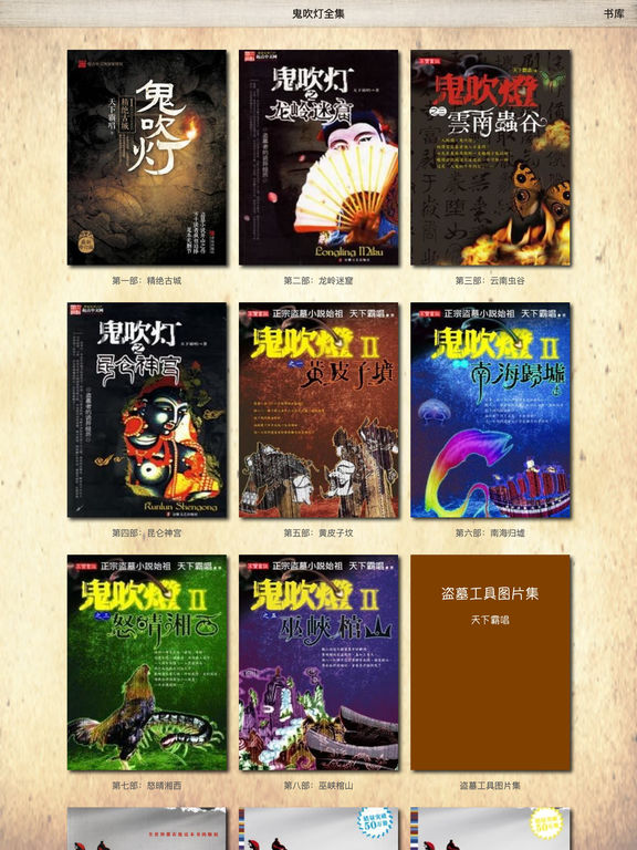 ※※※ 盗墓小说鼻祖之作,全本免费离线阅读 ※※※ “人点烛,鬼吹灯”是传说中的四大盗墓门派之一—摸金派的不传之秘,意为进入古墓中先在东南角点燃一盏蜡烛才能开棺,如果蜡烛熄灭,须速速退出,不可取一物。相传这是祖师爷所传的一条活人与死人的契约,千年传承,不得破例。 ※功能简洁※ - 支持设置字体、字号 - 支持白天、夜晚两种阅读模式 - 支持在阅读过程中进行摘录和标记 - 全部图书均为Epub格式,有图有文看着才过瘾! ※书目列表※ 第一部:精绝古城 第二部:龙岭迷窟 第三部:云南虫谷 第四部:昆仑神宫 第五部:黄皮子坟 第六部:南海归墟 第七部:怒晴湘西 第八部:巫峡棺山 盗墓工具图片集