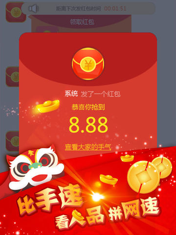 一个绝对让你抢红包抢到手抽筋的软件。别的地方红包好不容易才能抢到一个,这里的红包不间断! - 每分钟系统自动发红包,不再担心错过 - 千万红包自动发放,就看你能抢多少 - 天天都在过年,日日都有红包 徐老板祝全国人民2016新春快乐,撒钱啦!