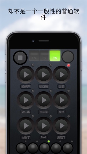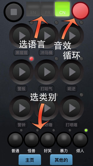 不是你一般会见到的音效软件,音效不是你听过一百遍的那些俗套。相反,这个软件的音效几乎都是专门录和设计的用在这个软件上。 * 可怕的怪兽咆哮的声音专门设计的一定要听哦! * 循环按钮。 * 五个不同的音效类别。 * 看上去很酷的用户界面。 * 将来会加上其他的音效 * 英文,法文和中文都支持。 * 停止按钮在左上角。