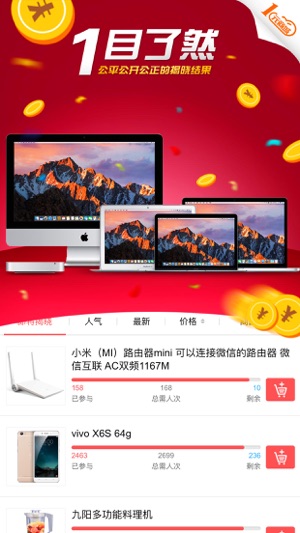 1元商城,海量潮品1元购,只需1元,就能给您的生活带来惊喜。 【1元打造梦想】 全新的购物方式,千种时尚酷炫商品滚动上线,等着您的到来! 实现梦想,只需1元,不用怀疑~ 体验全新的购物方式,实现最高性价比购物梦想 我们的理念是:给梦想一个机会,给生活一个惊喜! 【刺激的开奖过程】 在这里,您的梦想我们帮你实现,1元创造奇迹,每天每时每刻都在开奖,您来参与,获得惊喜! 款款商品都有让您爱不释手,出手云购就有机会拿走哦,您还不来吗?快点加入我们吧!! 小投入,大惊喜! 一旦参与1元商城,您就能体验不一样的紧张刺激,享受获奖的乐趣。 【和朋友一起分享】 快点邀请其他小伙伴来1元商城吧…