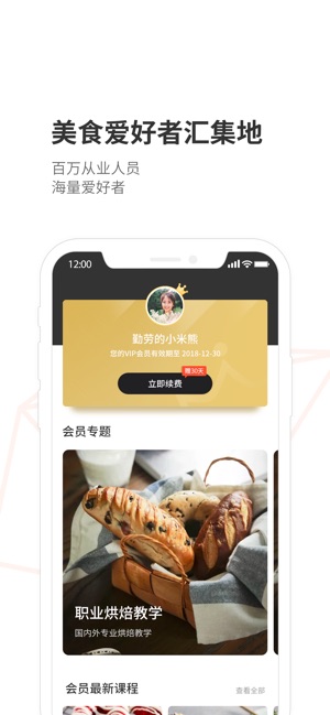 * 随时随地按需学习:米熊突破了地域和时间的限制,邀请专业好老师开设高质量的课程,购买后后即可任意观看; * 课程专业优质:米熊将职业兴趣教育和视频技术融合的平台,讲师包括美食大咖、艺术名流、功夫明星,法国国宝级甜品及糖艺大师Olivier Bajard、2015甜点世界冠军Emmanuele Forcone、MOF大师Roland Del Monte、受到法国总统表彰并授予勋章的Philippe、面包MOF Schwalbach、日本面包泰斗小仓孝树等数十位世界级美食大咖,他们开展线上直播授课,并产生了精彩卓绝的回放视频,都在等你发现; * 与专业老师互动:参与课程前可向老师咨询关于课程…