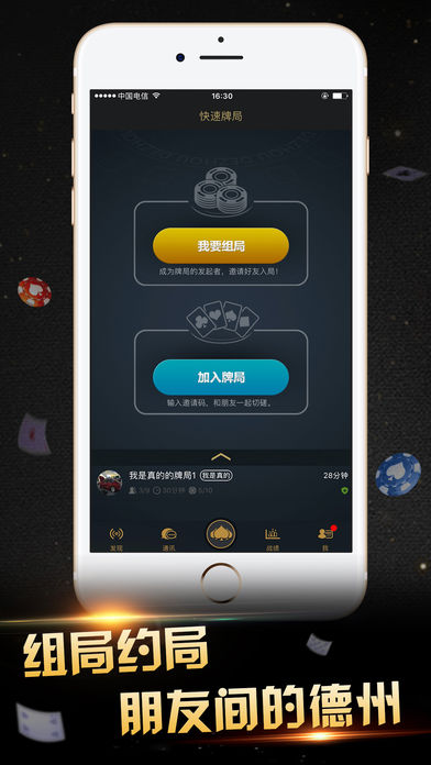 战鱼德州圈,专为德州扑克玩家量身定制的一个社交与游戏平台,专注于私人德州圈子,提供最专业、最真实的游戏环境。 游戏特色: -德州大部落,享不尽的牌局; -经典德州、奥马哈更多游戏尽在战鱼德州圈; -实时战绩,游戏数据实时记录,关键数据云端存储,安全方便; -德州俱乐部,快速组建您的百人甚至千人俱乐部,随时开局,不受地域限制; -全面数据统计,记录你的牌手生涯数据,盈利曲线,方便你合理安排游戏时间; -专业分析,权威专业的数据分析,帮助确定您自身的打牌风格,提升技术水平; -德州扑克高级模式—ANTE,自由设定ANTE大小,自由掌控加快牌局节奏; -保险模式,好牌All-in再也不用担心被BB,体验加倍; -更多专业功能,等你来发现…快来加入我们吧!