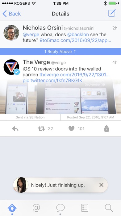 Leaf is a new Twitter client that connects you to the world with an all-new interface, fun gestures and attractive animations. Leaf considers every tweet with photo/video attached and personalizes it by smoothly merging the two together as one, taking up less screen space and in return, allowing you to read more tweets on the screen. Leaf comes pre-loaded with Night Mode which will automatically adjust itself according to your surrounding ambience. That way, you can comfortably enjoy using Leaf all day and night. We focused on making Leaf as simple to use as possible with the features that matters most. Key features: • 3D Touch support • Adjustable font sizes • Auto Dark Mode • Breathtaking interface • In-app notifications • In-line media/gifs • Lists (create, edit, subscribe) • No advertisements • Multiple Twitter accounts • Push notifications • Stream over Wi-Fi/cellular • Timeline filters (Mute, Silence) • Tweet marker • WYSIWYG interface Along with the above key features, Leaf offers other features that you'd expect from editing profile, search for tweets and users, quick reply notifications to attaching multiple images to a tweet. Take a breath of fresh air and enjoy a fun and new Twitter experience with Leaf. There's already so much Leaf has to offer and fortunately the roadmap ahead is still extremely long. This is only the beginning.