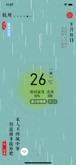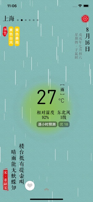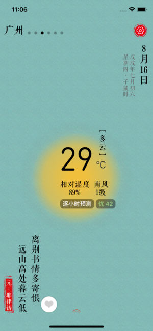 如果你想寻找一款安静,优雅,充满诗意的中国风天气预报app,风晴也许会是你最好的选择。 没有多余的复杂的功能,风晴只做应该做的事情: 1.基于强大且健壮的搜索算法,你所看到的诗词几乎一年365天都不会重样。 2.支持多个widget,其中widget-"风情-当下",以当前所在的坐标位置来显示天气,信息更加精准。 3.支持SpotLight搜索。 4.提供10000+国内各城市景区天气。 5.提供各种空气质量指数查询,甚至能选择离你最近的检测点查看数据(针对有检测点的城市)。 6.提供24小时的温度预测 7.提供极端天气预警,寒冷/高温/大风/森林火险等。 8.提供前后60天天气日历。 9.…