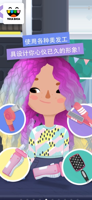 欢迎使用 Toca Hair Salon 3!这款人气爆棚的应用现已全面升级,强势回归!今天你想设计一款什么发型呢?时尚独特的,可爱俏皮的,还是个性十足的非主流发型?你可以从几十种自定义装扮中选择喜欢的角色 - 随机为这些角色搭配发型和服饰,可以给你带来无穷的游戏乐趣!拿起你的美发工具,随心所欲地打造各式各样新潮的发型吧! 头发逼真,令人惊奇 Toca Hair Salon 3 中的头发看起来和动起来简直就和真发一样!你不仅可以设计丝柔顺滑的直发,极富弹性的卷发,还可以设计蓬松感十足的大波浪。而且 Toca Hair Salon 系列首次推出了非洲式新潮发型!这种超级卷曲的头发类型可以让你设…