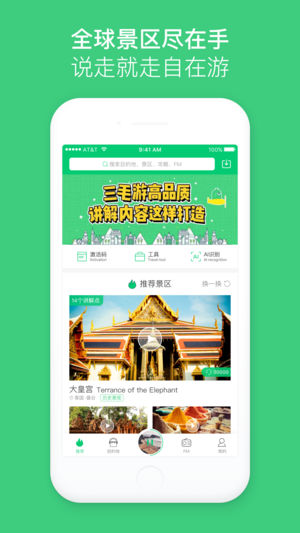 覆盖全球5000+景区和博物馆的智能中文自助导览解说 广州三毛信息科技有限公司是一家专注提供旅游知识内容服务的移动互联网公司,旨在为全球用户提供最专业、最权威、最智能、最有趣的景点语音讲解服务。作为法国卢浮宫、日本浅草寺、泰国大皇宫等世界景点的官方合作伙伴,我们携手各大景区官方与自身团队——曾经是Lonely Planet旅游编辑、腾讯开发工程师、测绘局工程师、留学欧洲翻译人员、广东省旅游局成员,及众多签约专业导游进行实地采编和专业制作,就是为了让您用最智能的方式获得有趣的景点讲解以及旅游文化知识信息。 【核心功能:专利微定位纠偏自动触发讲解、精美手绘景区地图、专业主播真人录音】 通过自主专利…