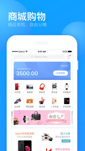 借钱就找来分期。纯信用借款,无抵押。2步申请,1分钟审核,闪电借款快至3秒到账 【优惠】 新注册用户专享超值优惠券大礼包,现在注册,立马享受超低服务费,商城产品种类多,APP下单服务费立享9.8折,折上折更划算! 【平台简介】 “来分期”App是一款国内发展最快的互联网金融应用,旨在为有借款需求的用户精心打造简洁高效、快速安全的纯线上信贷服务。 大数据支撑下的风控模型保证了用户贷款额度的正确匹配,互联网的思维模式确保了用户的使用体验 不论用户职业,不管借款用途,只要你有需求,你就可以申请贷款。 你的诚信,让我们选择相信;你的信用,让我们更加放心。 加入来分期,信用变现,让你的信用更值…