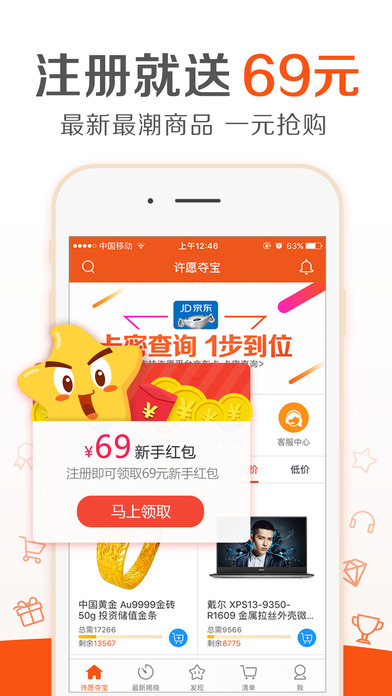 注册就送69元红包 一块钱就能抽到手机电脑自拍神器等 这便宜不占白不占 已经超过100000+的用户发布了真实晒单 打开我们客户端 每天都能见证1元抽到大奖的惊喜 下一个抽到热门潮流商品的就是你! 官方客服:2562385457 官方贴吧:许愿夺宝 官方微博:许愿夺宝 官方微信:许愿夺宝
