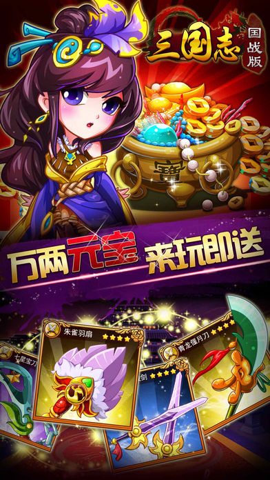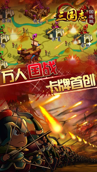 ▲年度大作三国卡牌RPG手机网游华丽登场 ▲国战手游版强势上线,打造第一国战 【 游戏介绍 】 三国卡牌RPG手机网游《三国志国战版》席卷今夏最热潮流。游戏以三国经典故事为背景,剧情轻松诙谐,画风酷炫精致。玩家扮演主公的角色,带领三国众多名将、过关斩将、征战沙场,成就一统霸业。 完美的武将收集养成系统,独特的卡牌国战系统,多变的情谊组合系统,公平的竞技打擂系统,丰富的三国战役系统,让你流连忘返! 【 游戏特色 】 ▲ 惊喜活动福利丰厚实在 首次登录可轻松获得价值6666元宝的礼物,升级领元宝、满星领令牌、每日登录更有礼,拿到手软玩到HIGH。 ▲数百三国名将随性养成 数百名三国名将等你招募、升级、强化、传承、培养,还等什么?赶快随性搭配属于你的完美组合,带领他们征战沙场,成就霸业! ▲上千道具装备传世兵法 上千种道具、兵法卡牌,胸藏万卷兵书的你,还不趁早身骑赤兔马,手提偃月刀,左邀一身是胆赵子龙,右呼智谋百出诸葛亮,出祁山定洛阳! ▲独特情谊组合变化多端 蜀中五虎将、吴国四都督、北魏五良将,吕布和貂蝉,魏蜀吴三国奠基人,随性搭配,没有无敌的阵容,只有更强的组合! ▲酷炫战斗画面释放激情 《三国志国战版》部分动画采用Cocos2d引擎,充分发挥OpenGL的图形渲染能力,让游戏画面表现的更为流畅。酷炫的战斗场景,重现昔日恢弘战斗场面! ▲经典三国战役诙谐再现 《三国志国战版》战役按照三国经典战役按时间先后顺序编排,以轻松诙谐的语言,引导大家再现一个全新的三国世界。 ▲公平竞技擂台成就王者 天梯式竞技模式,只能与你排名相近的玩家PK,公平竞技,今日的擂主,明天的王者! ▲年度大作三国卡牌RPG手机网游,《三国志国战版》等您来感受。快来下载体验! ▲三国志国战版-年度卡牌大作。悍将三国、真三国、逆转三国、三国志、三国无双、三国来了、龙战三国等三国迷赶快加入吧!