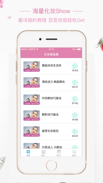 目前国内更专业实用,更接地气的视频学化妆神器,让爱美的你,能真正的学会化妆,爱上化妆,更精致的过好每一天,并实时地告诉自己:“嗨!你看起来还不错。” 下面是说点你关心的: 【跟谁学?】:强大的美妆班底阵容,邓紫棋、王珞丹、古天乐、林俊杰等知名明星专用化妆造型师 ;亚洲一线美妆达人化身美妆po主,由她们亲自手把手教你学习,零距离互动。让即使是化妆新手小白,也能在几天内快速掌握要领,快速上手,你就是下一个生活达人 【怎么学?】 从零基础开始,入门底妆,眼线,眉形,翘睫毛,腮红,每一步都由化妆老师耐心讲解手法技巧,妆容要点同时分享护肤保养,化妆品等方面的知识,以及潮流前沿的时尚资讯
