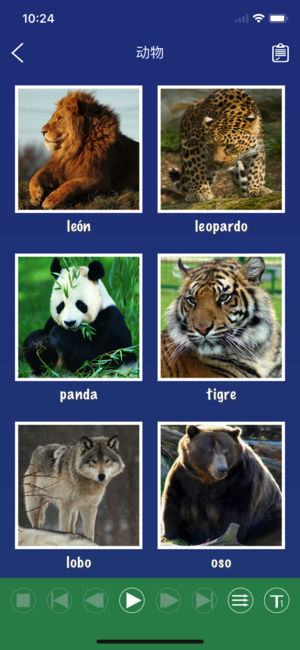 这是一款按日常分类学习西班牙语单词的工具。 主要特点: • 对单词进行分类 • 提供图片辅助记忆 • 提供男声、女声两种标准发音 • 可以从听、说、读、写全方面学习单词 • 可自由调节语速 • 提供语音声纹比较,辅助纠正发音 …… 词汇分类: 动物、身体、水果、蔬菜、食物、饮料、颜色、形状、数字、时间、国家、城市、旅游胜地、市政设施、花卉、职业、办公用品、生活用品、服装、体育、交通工具、天气、情感 ……