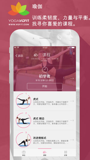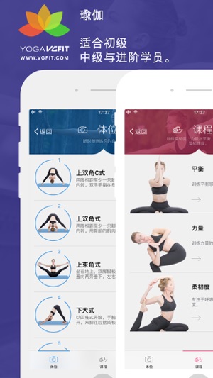 瑜伽体位集 -高清视频示范每一个体位 -由专业瑜伽导师设计的111个体位。 -依据类型、专注点和能力搜寻体位的中文名称。 -找寻各个体位、益处和说明的信息和描述。 瑜伽课程 -专注于柔韧度、力量、平衡的提升。 -高清视频呈现9个独特的瑜伽课程。 -适合各个等级:初级、中级、平衡,选择你喜爱的。 -课程时长从10到30分钟。 -你可以储存课程记录并安排下一个课程。 还有 -从VGFIT发现新的应用程序,达成养身目标。 -为你的健康生活搜寻更多瑜伽课程和指导。 -在电视机上使用AirPlay或Chromecast播放课程。 -与朋友们分享以获得动力。加入vgfit.com社群。 在www…