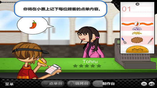 你梦寐以求想当一个墨西哥卷饼店主,终于有一天,爸爸资助你开起了一家墨西哥卷饼店,为了不辜负爸爸的期望,你开始了努力学习制作墨西哥卷饼的技术。注意客户们的各种需求,制作出符合他们要求的墨西哥卷饼,这样就能有不错的收入来提升墨西哥卷饼店的装备啦。顾客多的时候,要用便笺把他们的要求记录下来,墨西哥卷饼制作完成之后再把便笺贴上去,这样就不容易弄乱。加油啊,努力把汉堡店开的越来越专业!
