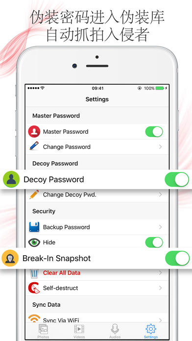 ** 限时免费下载! 你是否正在寻找一个能安全存储私人相片和视频的应用? HiPhoto 可以安全保护您的私人相片和视频以及录音。除此以外,您还可以使用内置的隐私浏览器不留痕浏览网页,并且可以直接将喜欢的图片下载到应用中! HiPhoto 功能强大,性能卓越! * 使用主密码锁住应用,没有您的密码或者你的指纹,任何人无法开启应用; * 应用内支持创建自定义文件夹,您可以给不同的相片视频分类; * 不同文件夹内的相片和视频可以随意相互移动; * 内置功能强大的录音机,可以直接录制并编辑您的私人录音; * 使用苹果系统提供的分享功能,您可以在其他应用中直接把图片存储到本应用; * 使用iTunes方式或者Wi-Fi方式从电脑导入相片视频到手机中; * 独特的隐藏列表可以保存您最隐私的资料; * 可以通过Wi-Fi通信方式直接在电脑端浏览本应用中的文件; …… 幻灯片浏览功能 * 左右滑动浏览切换相片视频; * 拖拽放大和缩小图片,细看局部特写; * 全屏预览播放; * 在幻灯片浏览模式中提供了多种选择:背景音乐、过度模式、循环模式等。 上传备份和传输相片视频 * 你可以通过iTunes/Wi-Fi方式把手机中的相片和电脑中的相片进行同步传输备份; * 你可以通过系统自带的分享功能将图片视频等分享出去; * 你可以直接从系统相册或者别的应用中打开此应用并将需要的图片插入该应用中。 伪装密码功能 * 如果您这款伪装计算器不小心被人发现了,这个令人讨厌的人可能会恳求你打开来看看。这时您只需要告诉他你预先设好的伪装密码,输入伪装密码打开的应用看到的是完全不用的相册! 抓拍入侵者功能 *如果有人发现这款计算器是隐私相册并多次尝试输入密码以解开应用,那么应用会自动抓拍入侵者头像,留下其犯罪证据! 分享功能特性 * 导出相片到系统相册中; * 直接通过邮件发送图片给朋友; * 复制图片或直接将图片复制到信息框中回复朋友短信息; * 可从其他应用中直接打开该应用。 HiPhoto 支持大量主流媒体格式 * 相片:jpg, png, bmp, tif, tiff, jpeg, etc. * 视频:mov, mp4, m4v, mph, etc. * 音频:mp3,wav,aacf, etc. ******************************************* 你的所有相片和视频等文件都仅仅存储于您的设备中,这是100%隐私的。所有数据不会上传到我们的服务器,我们没有任何能力可以获取到您的资料。请百分之百放心使用!