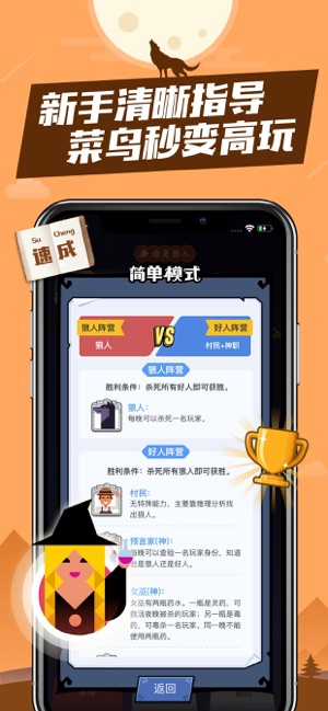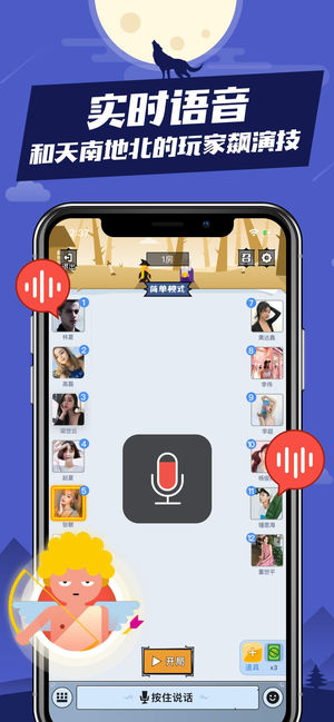 谁是狼人,一场谎言与推理的对抗,为社交推理爱好者寻找伙伴。 拥有丰富的模式,快速匹配。提供最流畅的实时语音功能。 跳查杀,飙演技,欢乐竞技的同时还能聊天把妹。嗨到停不下来。 比谁是卧底、你画我猜更有趣。许多明星大腕儿都在玩,想和里面的大神一样用推理PK谎言,用语音互飚演技,无奈找不到这么多志同道合的玩家? 我们可以满足你: 1、支持实时语音聊天,感受语言与逻辑的魅力。不论是躺着、坐着、趴着还是倒挂着,各种姿势,一边玩推理一边交友,嗨到停不下来! 2、快速匹配,独自一人在家也能玩,社交新方式,一起烧脑! 3、系统自带语音法官引导,不必担心对规则不熟悉、弄错流程 4、新手不担心,简单易懂的新手…