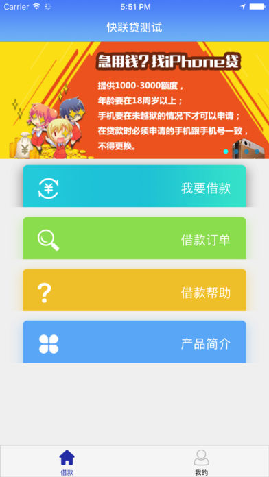 快联贷,是由浙江快联金融服务外包有限公司建立的一个安全、高效、诚信的借贷款app平台,让您不再因钱而烦恼。我们将根据手机型号,出借资金。仅需抵押手机,便可快速贷款;仅需一分钟,便可当天放款。全程的线上网贷APP,让借贷更加简单、快速和高效。快联贷,您生活的不二选择! 产品简介: 1.年满18周岁,手机型号为6以上,已实名认证且已绑定银行卡的用户可申请; 2.手续简单,审核快,24小时在线服务。足不出户便可完成在线申请和审核,承诺5小时内放款,操作便利,费用透明; 3.用户若违约,我司将会把违约客户信息提交至人民银行,上征信。同时,有权对违约用户抵押的手机进行任何处置。 友情提示:请填写真实信息,进行实名认证后,方可操作。 客服电话:400-855-8288,如有疑问请来电咨询,工作时间:周一至周六 8:30-17:00
