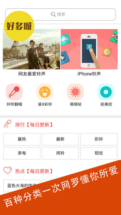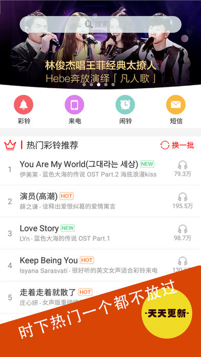 每日更新1000+热门好铃声,好听好玩好好用~ 每首铃声都是高品质,告别低音质爆破音~ 一键轻松设置,方便快捷~ 千万用户的共同选择~