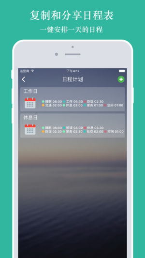 格物以致知,格时以致行,知行日程是一款功能强大的时间和任务管理软件,她能帮助您轻松掌握自己的时间与任务。 爱范儿/MindStore周榜推荐 如果您不知时间都去哪儿了,如果您想提高自己的时间使用效率,如果您觉得追踪时间、记录时间太过繁琐,请让知行日程来帮助您。 ◆30秒内记录一天的日程 使用知行日程独创的日程时钟功能,可以快速添加日程,实现活动时间秒记。点击活动即可创建30分钟的日程,30秒内即可记录一天的日程。 您可以保存一天的日程到日程计划里,只需轻松点击,即可创建下一天的日程,也可以将日程分享给朋友和家人。知行日程还有活动时间趋势,24小时时间分布等时间分析功能,让您看到时间都去哪了,掌…
