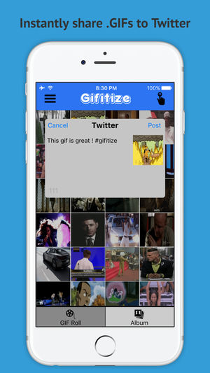 The Ultimate Twitter GIF downloader is finally here! Gifitize is the simplest and most effective way to save multiple GIFs from the Official Twitter App. Gifitize allows GIF saving without leaving the Twitter, Reddit, or Imgur app. Find the perfect GIF, save it, view it, organize it, and post it. Sa…