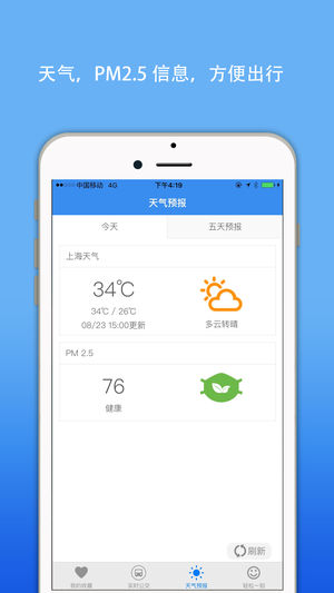 查看上海实时公交信息,您可以在公司或者家中看好了公交位置,知道大概多少时间到你所在的站台再出门,避免风吹日晒雨淋,是您上下班途中的好帮手。 现已添加站点收藏,立即刷新,手动刷新,到站提醒,天气环境预报轻松一刻等功能。后续会添加更多设置菜单,后台到站查询,到站推送提醒,KFC麦当劳优惠券等功能敬请期待。 如有任何问题建议可通过评论方式反馈给我,合理可行的建议意见我会第一时间采纳更新,谢谢,祝使用愉快。